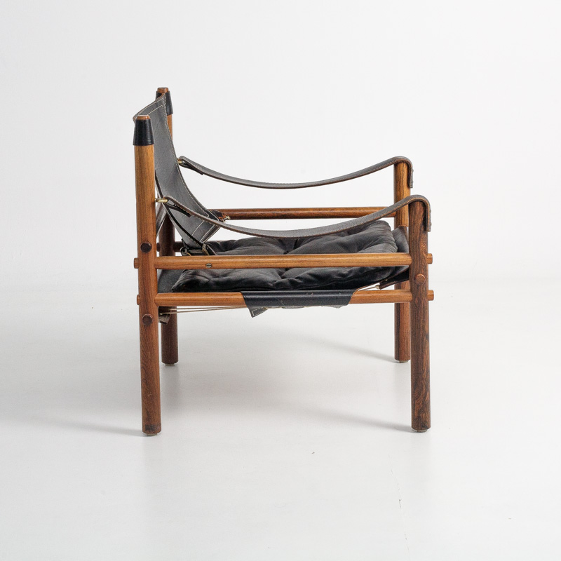 Designed by Arne Norell for Norell Möbel AB Sweden 1960s Price POA The ‘Sirocco’ easy chair, designed by Swedish designer Arne Norell in 1964, is a notable example of mid-century Scandinavian furniture. Produced by Norell Möbel AB, the chair exemplifies Norell’s innovative approach to design, combining functionality with aesthetic appeal. Handmade in Sweden, the ‘Sirocco’ chair is assembled using traditional techniques from solid rosewood, ensuring durability and longevity. The seat and backrest are upholstered in high-quality leather from renowned tanneries Tärnsjö Garveri. The chair’s components are designed to be disassembled and reassembled, reflecting a thoughtful approach to both design and practicality.