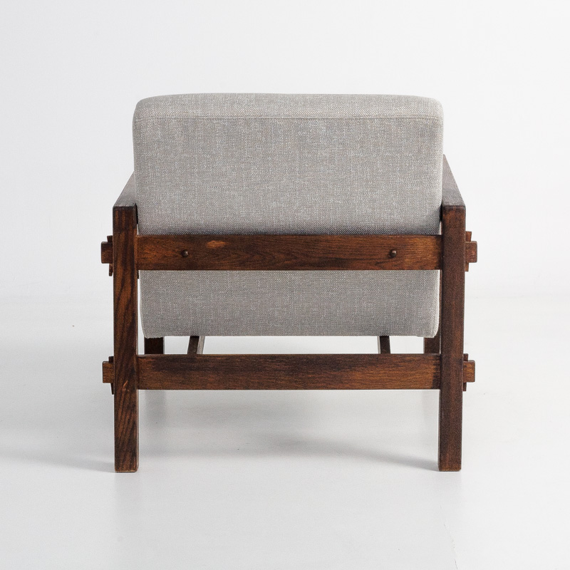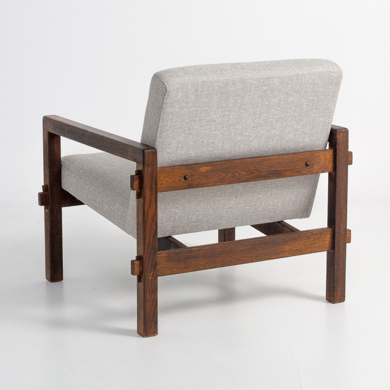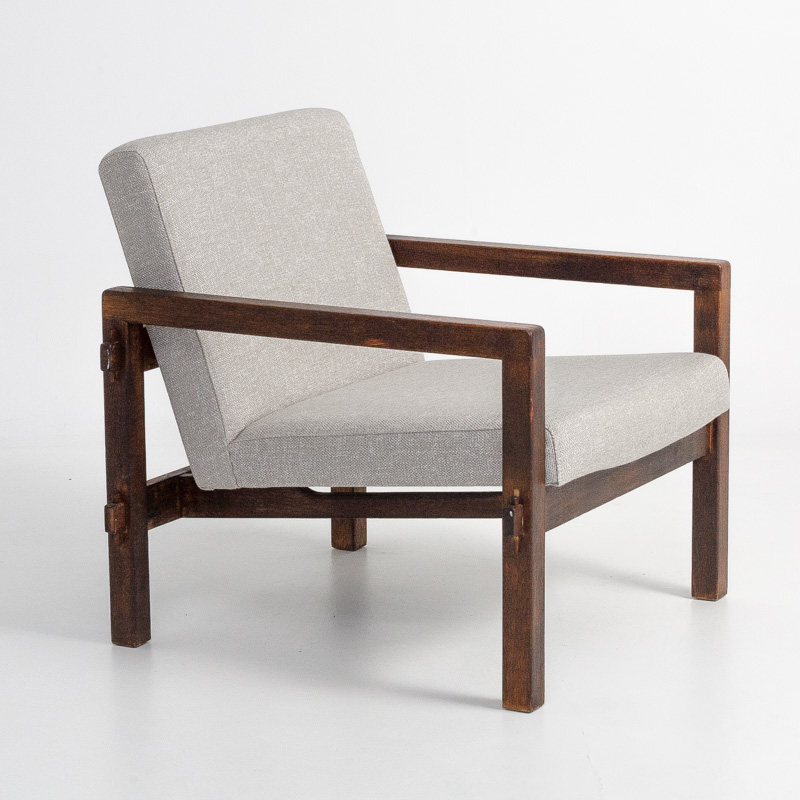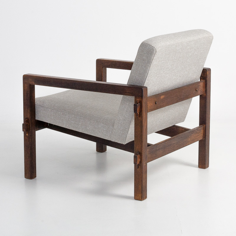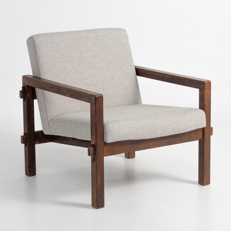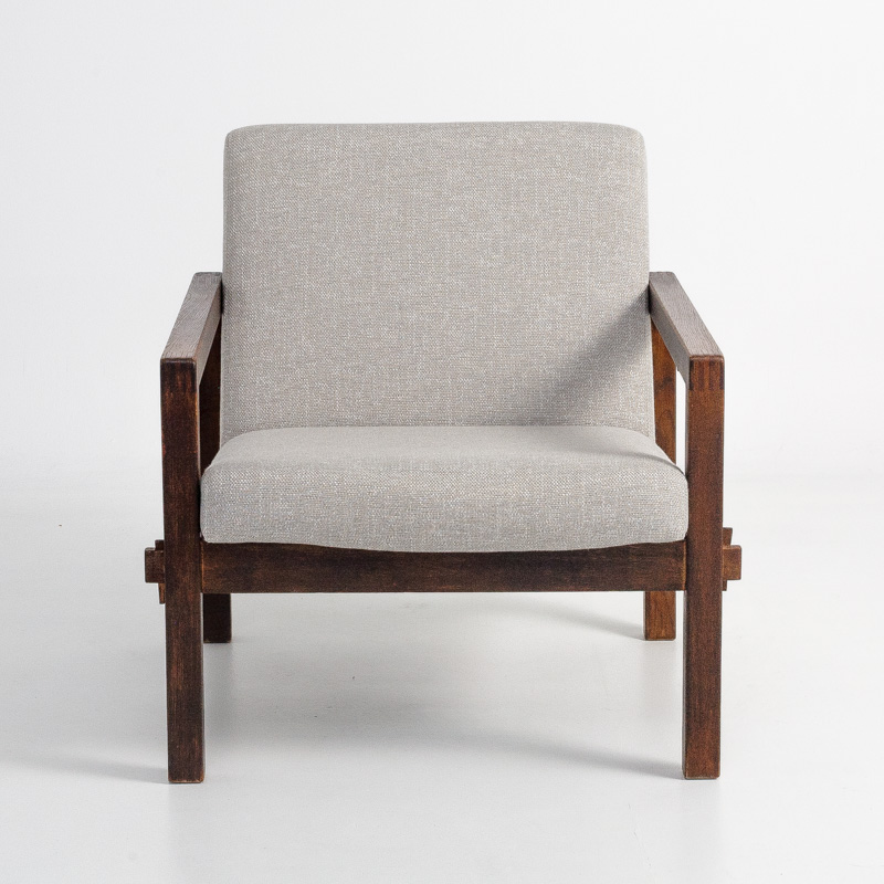 The “Tupa” collection, designed by Finnish designer Reino Ruokolainen in the 1960s, exemplifies the minimalist and functional ethos of Scandinavian midcentury modern design. Produced by Haimi, a Finnish furniture manufacturer, the Tupa series includes armchairs, sofas, and complementary pieces like coffee tables and ottomans. The Tupa furniture is characterised by its clean lines, restrained proportions, and the use of natural materials. The original armchairs and sofas feature exposed wooden frames, crafted from oak or beech, with fixed cushions upholstered in neutral-toned fabrics such as canvas or wool. The construction emphasises craftsmanship, with visible joints and a sturdy, yet elegant, form.